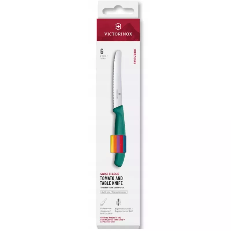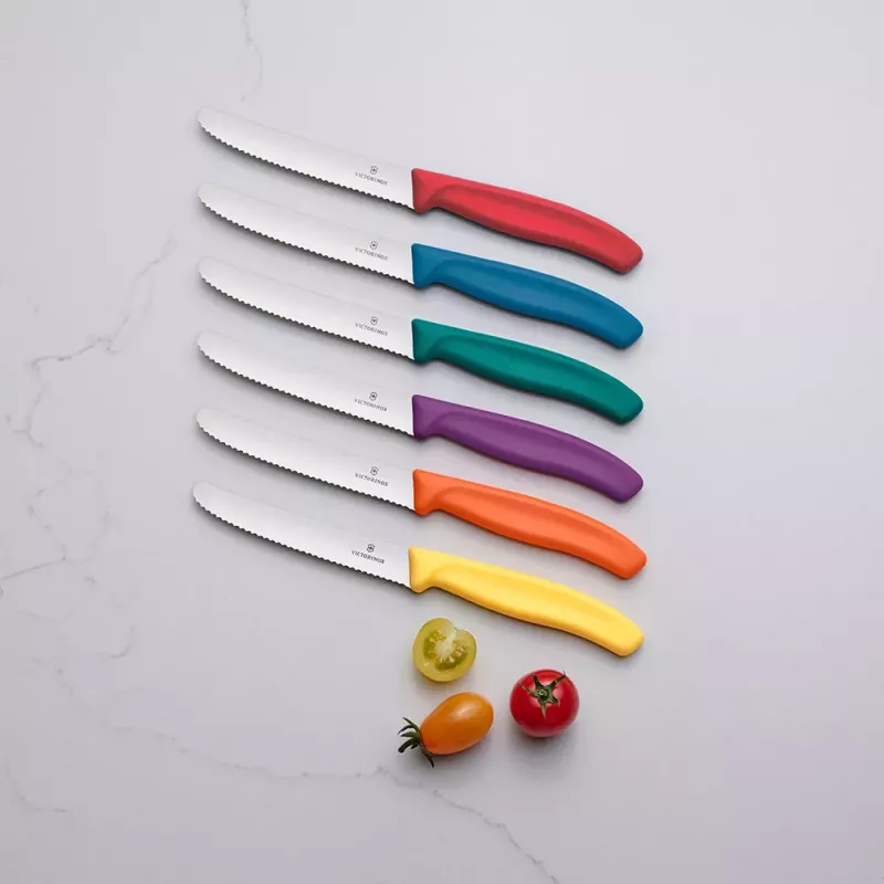 Набір ножів 6 шт для томатів 11 см Victorinox SWISS CLASSIC закруглений кінчик, серрейтор, різнокольорові ручки, подарункова коробка (6.7836.6C1)