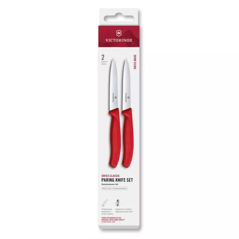 Набір з 2 ножів для чищення овочів 10 см Victorinox Swiss Classic леза - гладке, серрейтор, червоний (6.7791.2C1)