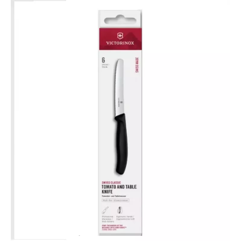 Набір з 6-ти однакових ножів 11 см Victorinox SWISS CLASSIC Tomato and Table Set серрейтор, заокруглений кінчик, чорний, подарункова упаковка (6.7833.6)