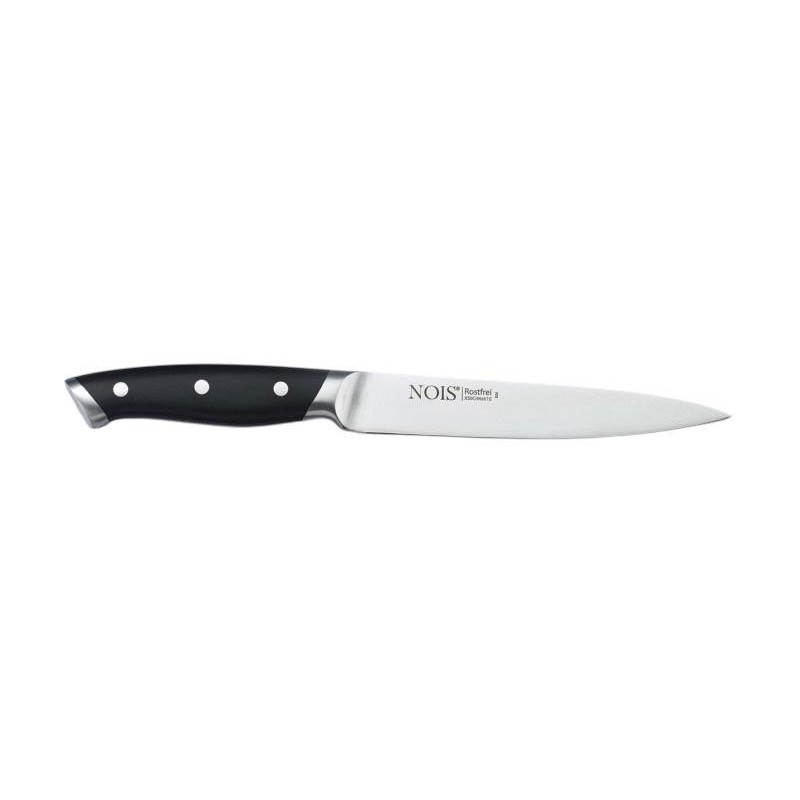 Ніж для м'яса NOIS – це надійний інструмент, виготовлений з високоякісної сталі, який забезпечує легке та точне нарізання м'яса будь-якої жорсткості. Його зручна ручка та збалансована конструкція роблять роботу з ним комфортною та безпечною. Ідеально підходить для професійного та домашнього використання.