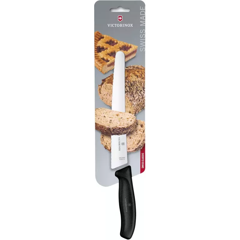 Ніж кухоний кондитерський хлібний 22 см Victorinox Swiss Classic Bread&Pastry лезо закруглений кінчик, серрейторне, чорний (6.8633.22B)