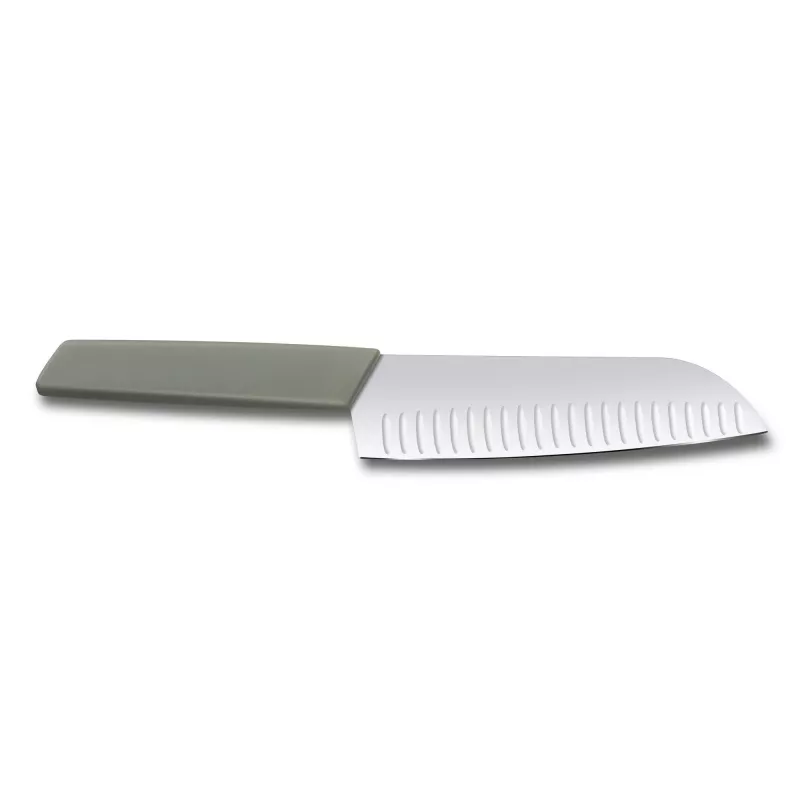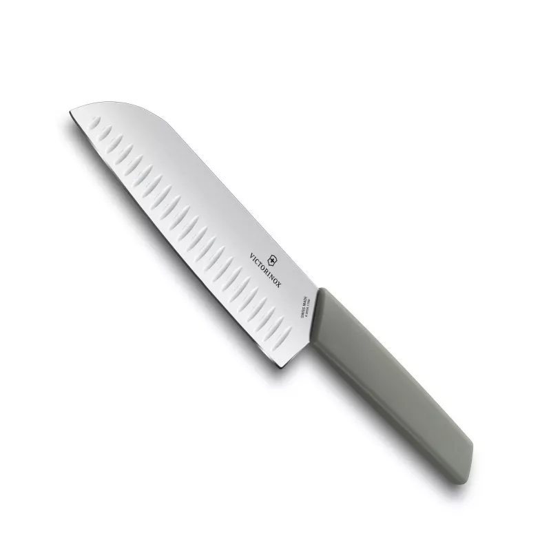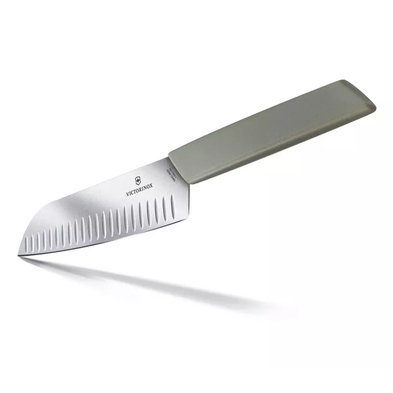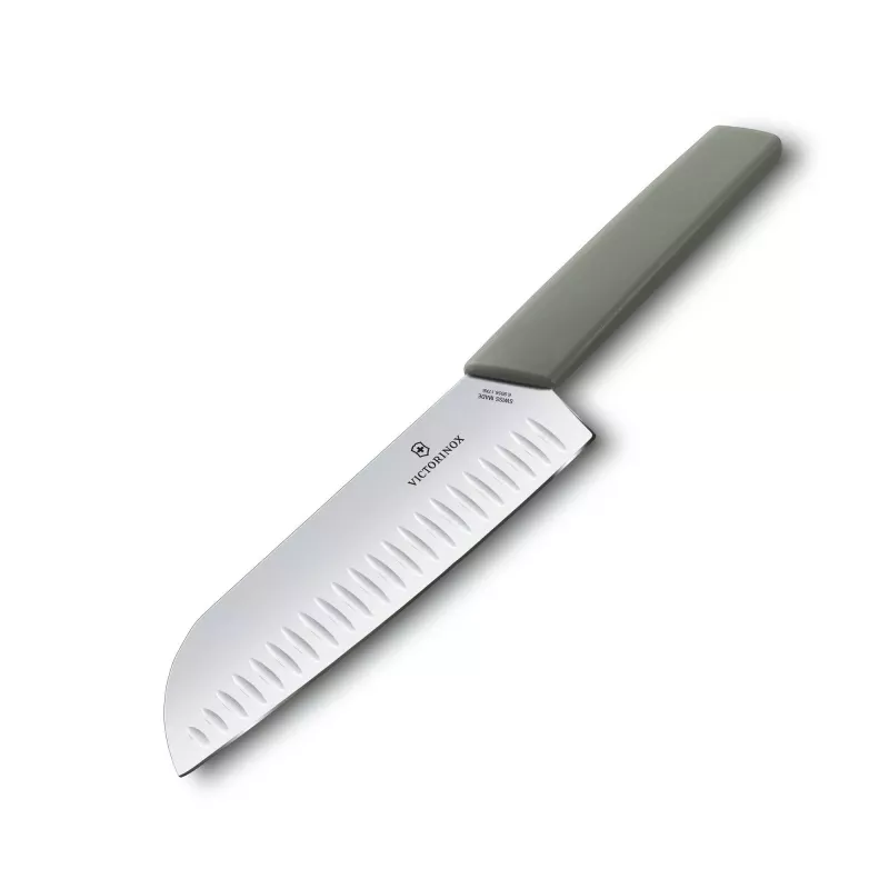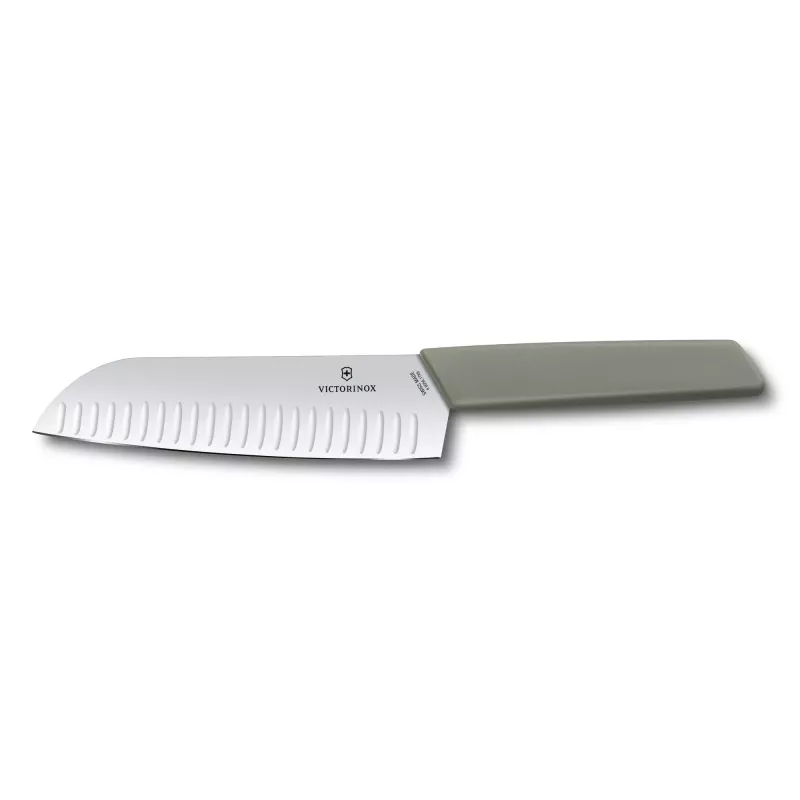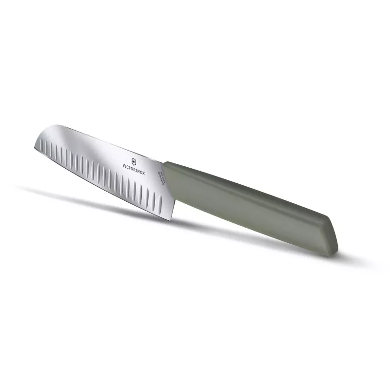 Ніж Victorinox Santoku Swiss Modern (6.9056.17K6B) оливковий колір, рукоять із пластику, лезо рифлене 17 см.