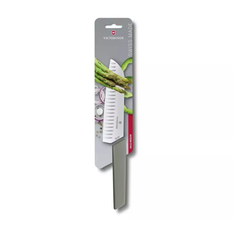 Ніж кухонний Сантоку 17 см Victorinox Swiss Modern Santoku лезо рифлене (з канавками) , оливковий , блістер(6.9056.17K6B)