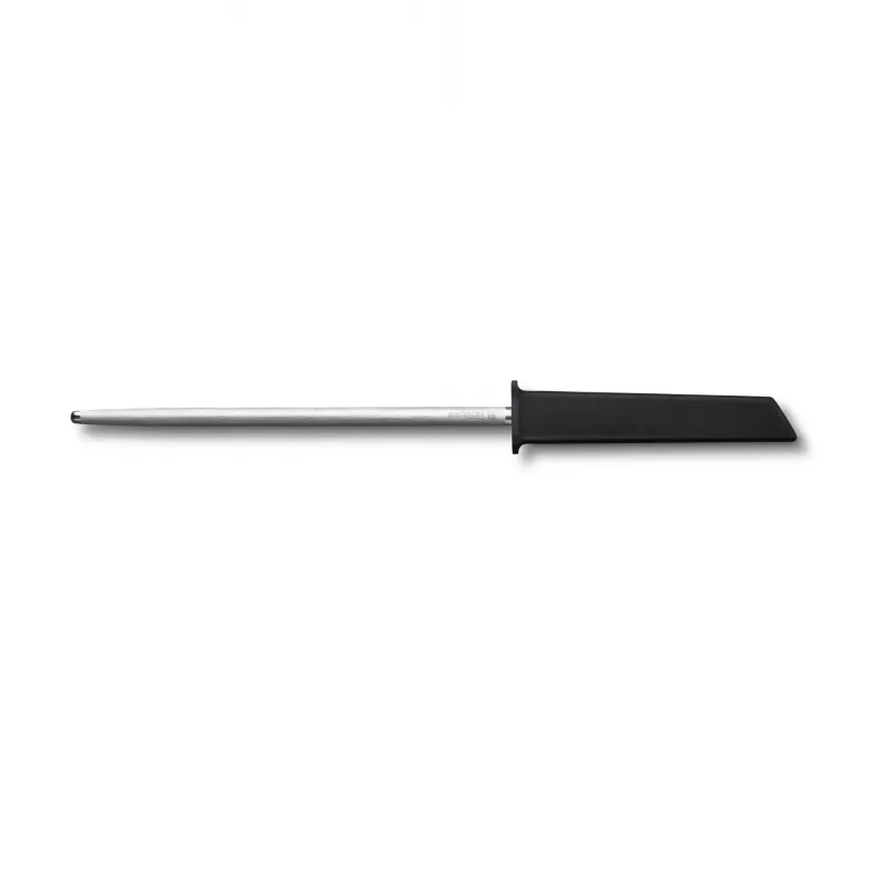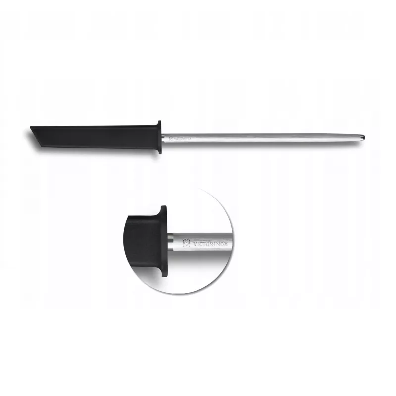 Зберігайте свої ножі загостреними за допомогою нашого інструменту для заточування ножів. Мусат Victorinox виготовлений з виключно міцної хромованої хонінгувальної сталі, оснащений ергономічною рукояттю і має круглу форму з середньо-дрібною насічкою (medium-fine). Мусат відрізняється легкістю у використанні, міцністю та довговічністю. Зносостійка поверхня стрижня у поєднанні з високою якістю виконання гарантує надзвичайно довгий термін служби.
