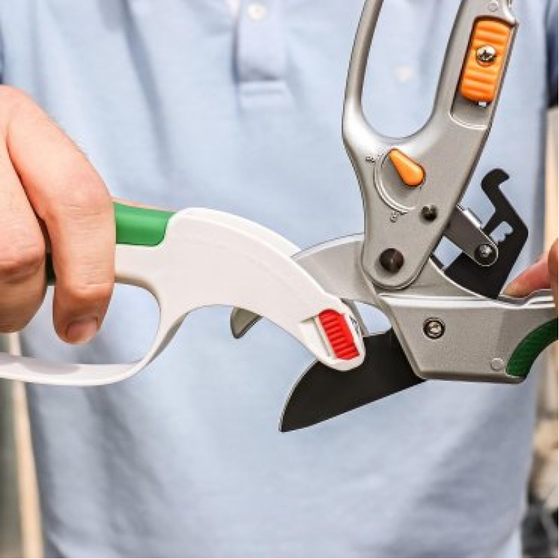 Точилка багатофункціональна GRÜNTEK 295001007 зі змінними модулями – призначена для заточування лез секаторів (з наковаленкою та байпас), гілкорізів, садових ножиць, ножів, стамесок тощо.
