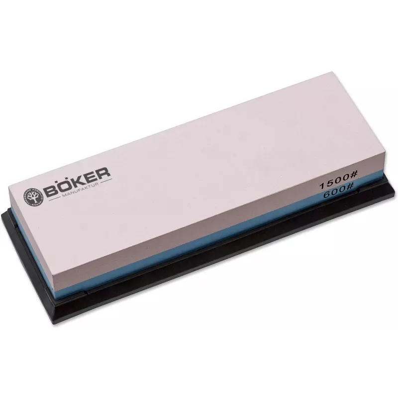 Компактний двосторонній точильний камінь Boker Wasserstein легко і швидко додасть гостроти затупленому клинку кухонного ножа. Камені із зернистістю 600/1500, 2000/5000 або 3000/8000 оснащені гумовою підкладкою для більш зручного використання і надійної фіксації. Сторона з великою зернистістю використовується для формування різальної кромки, з дрібною – для фінішного доведення.