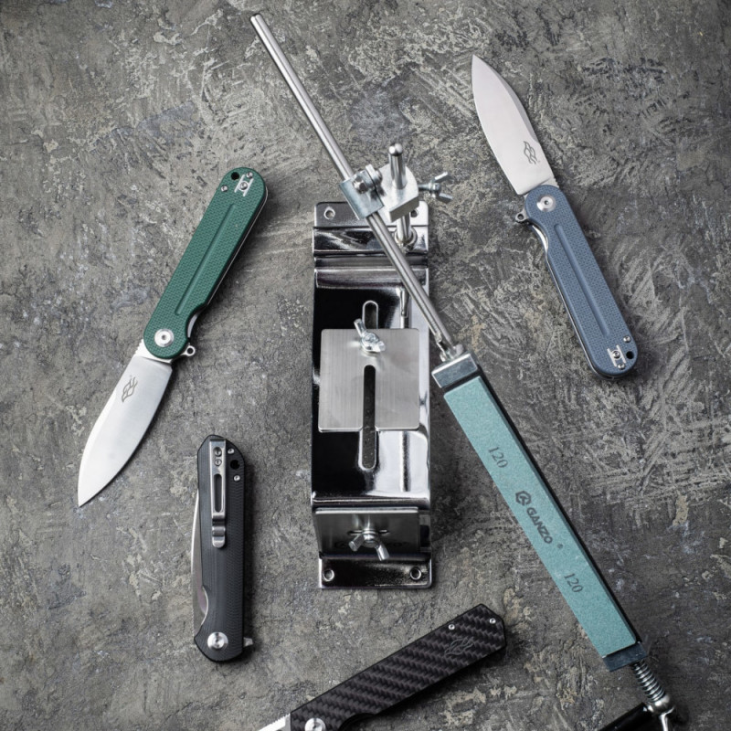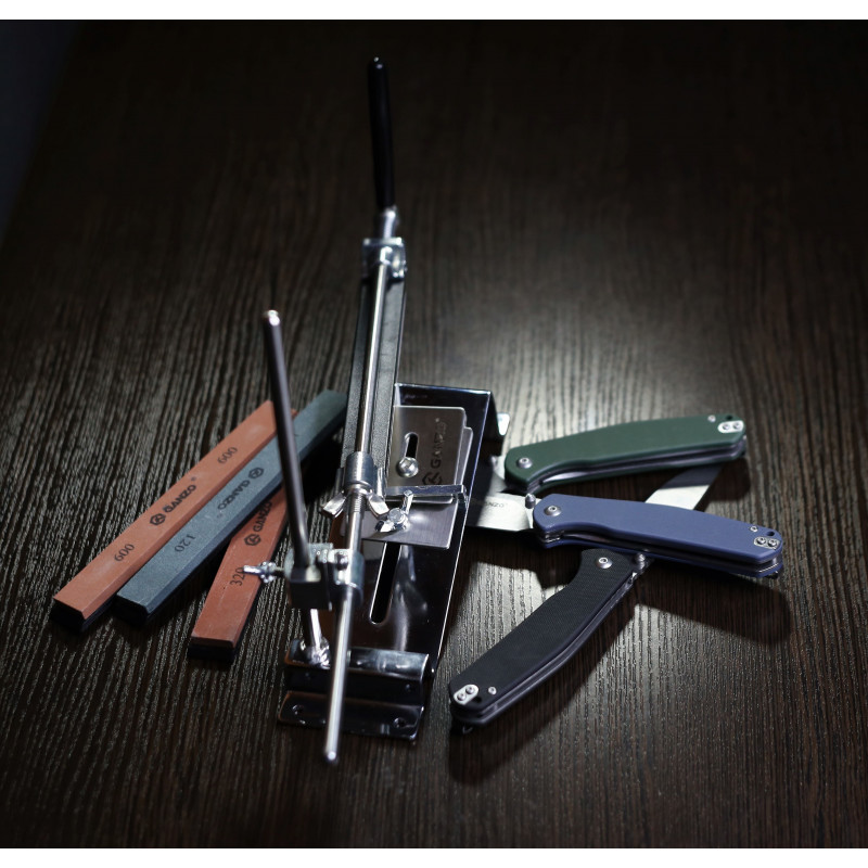 Ganzo Touch Steel призначена для стаціонарного використання. На підставі точила навіть передбачені отвори під болти для кріплення на столі або на дошці. У цьому випадку, положення буде жорстко зафіксовано, а будь-яке ковзанню під час роботи — виключено. Але і транспортування точильного інструменту також не представляє проблем. Модель Touch Steel має досить компактні розміри в складеному стані завдяки тому, що її напрямна розбірна і складається з двох окремих деталей і ручки. Зберігати точило можна у вхідному в комплект чохлі.