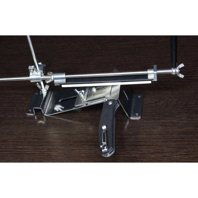 На відміну від інших точілок Ganzo, модель Ganzo Touch Pro Steel — повністю металева, що підвищує її міцність і довговічність. Крім того, під час заточування, клинок можна зафіксувати в потрібному положенні за допомогою сталевої направляючої пластини. Ця особливість гарантує повну безпеку для користувача під час заточування ножа, але й накладає певні обмеження. Металеві деталі можуть залишити дрібні подряпини на поверхні ножа. Тому перед заточуванням рекомендується наклеїти на клинок з обох сторін малярську стрічку, ізоляційну стрічку або будь-яке інше захисне покриття, яке зможе захистити лезо від прямого контакту з металом направляючої пластини і підстави.