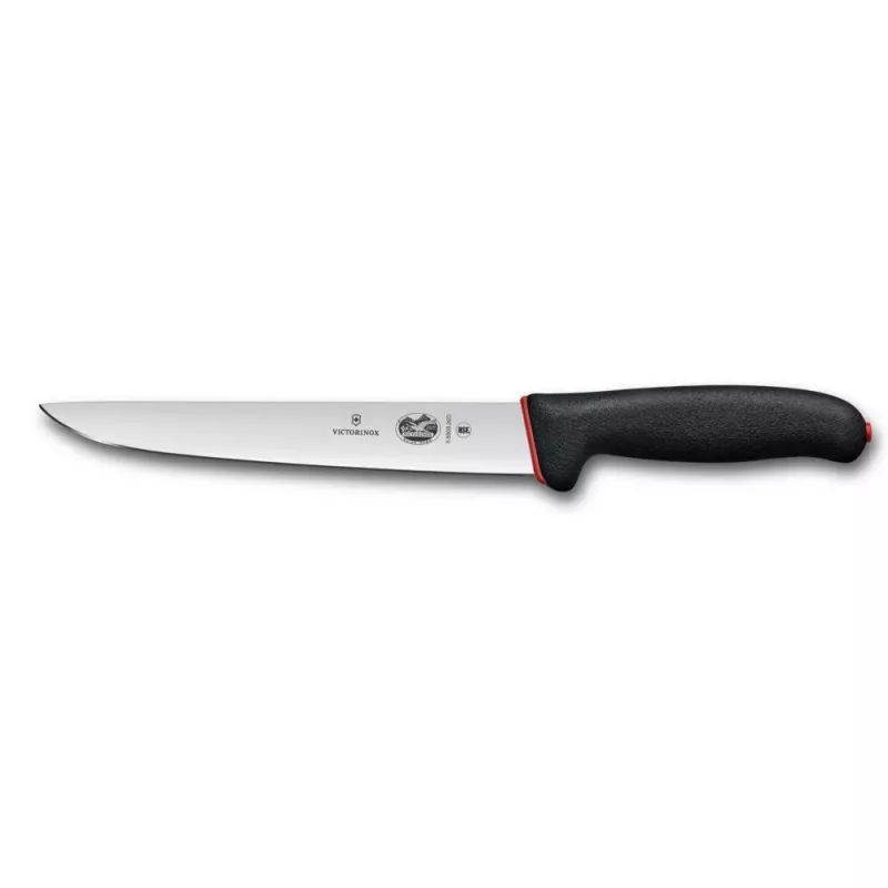 Універсальний обробний ніж для м'яса 20см Victorinox DUAL GRIP Sticking гладке лезо, чорна ручка (картонний блістер на лезо) (5.5503.20D)