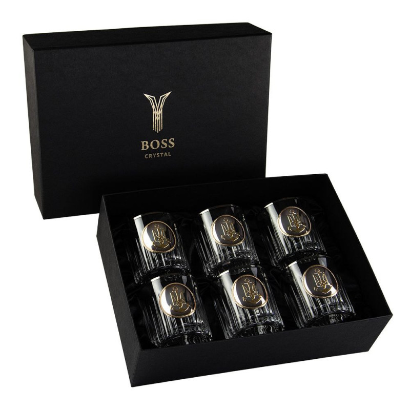 Набір для віскі "ШЕВРОН ВМФ" 6 келихів 360 мл, кришталь з платиною, зображення зі срібла з позолотою
