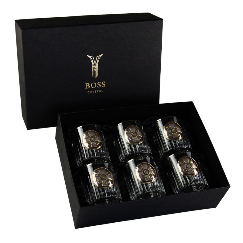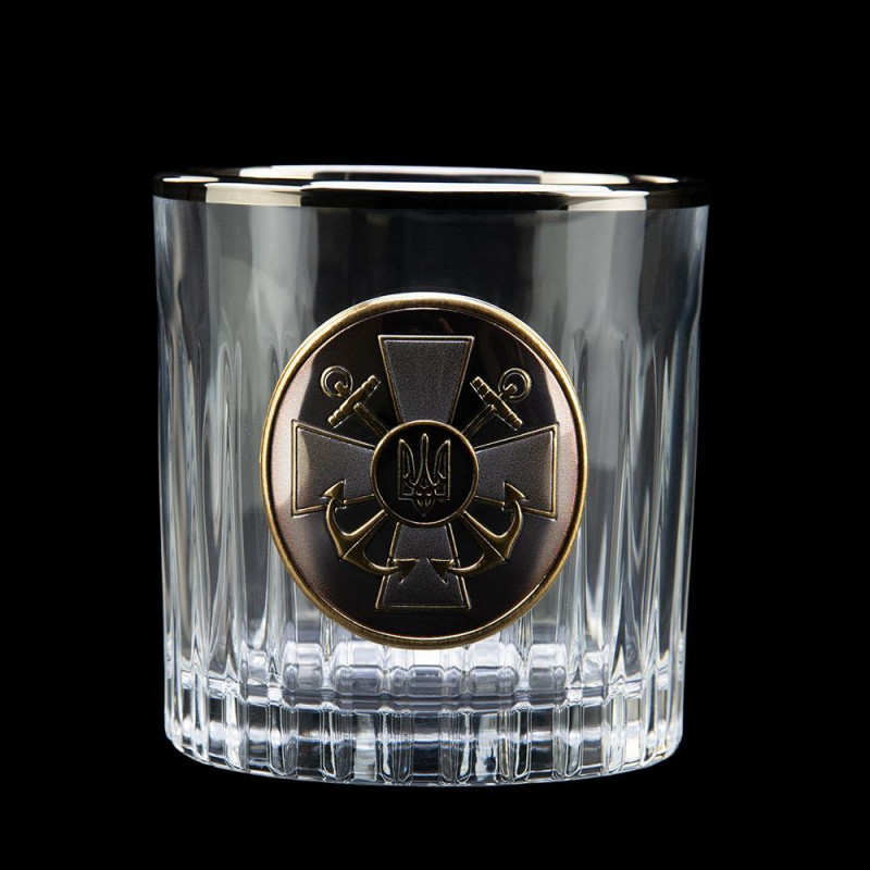 Набір для віскі "ШТАБ ВМФ" 6 келихів 360 мл, кришталь з платиною, зображення зі срібла з позолотою