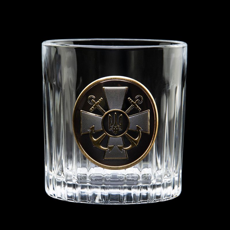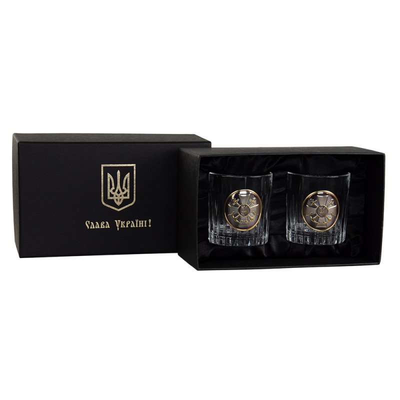 Набір келихів для віскі “ШТАБ ВМС” Boss Crystal, 2 келиха, срібло, золото, чистий кришталь