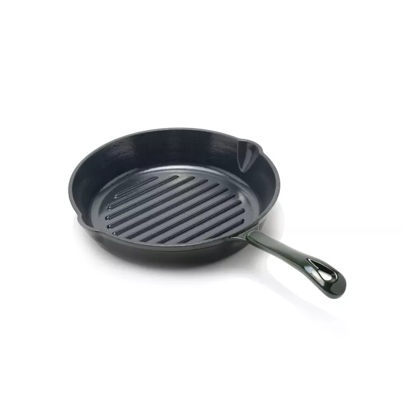 Ця сковорода вирізняється довговічністю, завдяки міцному чавунному корпусу. Емальоване покриття не лише запобігає пригоранню їжі, а й полегшує очищення. Темно-зелений колір додає елегантності та стилю вашій кухні. Сковорода підходить для всіх типів плит, включаючи індукційні.