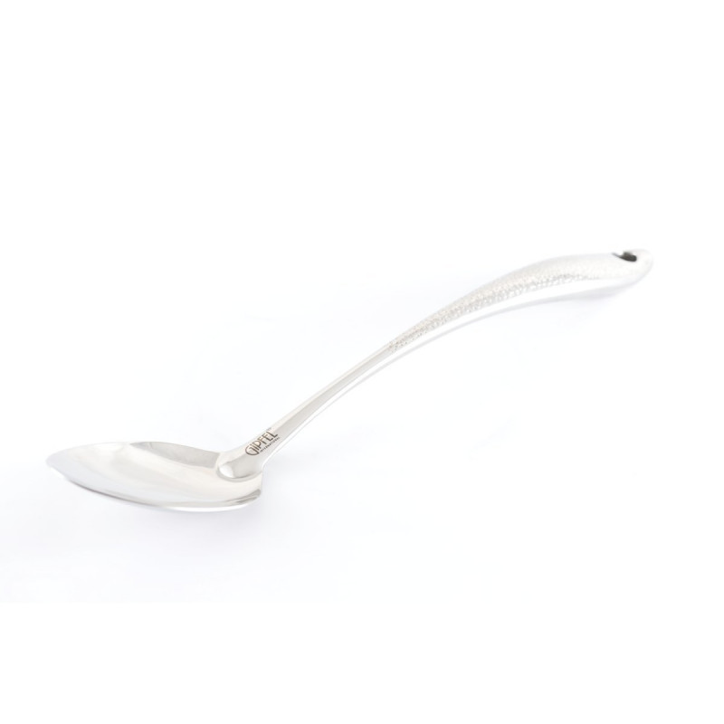 Елегантна і міцна ложка GIPFEL VERDE виготовлена з високоякісної нержавіючої сталі. Її довжина 37 см робить її ідеальною для помішування великих об'ємів їжі, наприклад, у високих каструлях або казанах. Нержавіюча сталь забезпечує довговічність, стійкість до корозії та легкість у догляді.