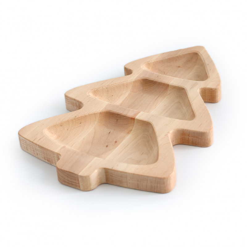 Дерев'яна тарілка у формі ялинки виготовлена з натуральної вільхи. Це екологічно чистий та безпечний посуд, який ідеально підходить для сервірування святкового столу, подачі закусок, фруктів, або солодощів. Оригінальний дизайн додасть вашому столу особливого шарму та створить затишну атмосферу.