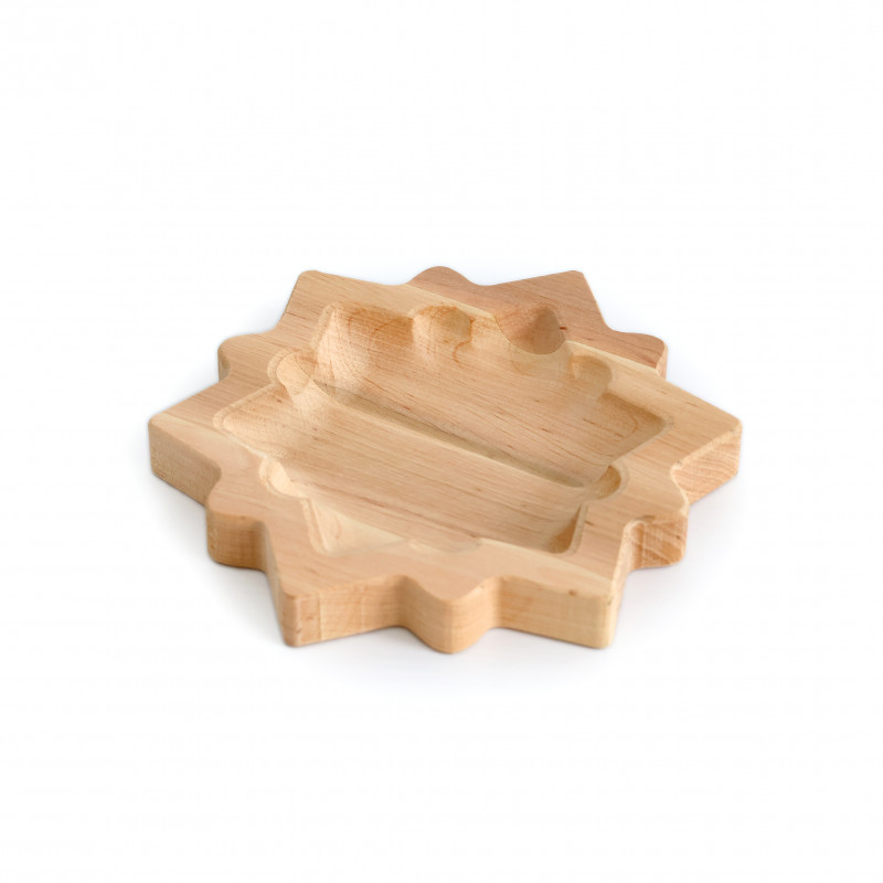 Дерев'яна тарілка у формі зірки, виготовлена з натуральної деревини вільхи.
