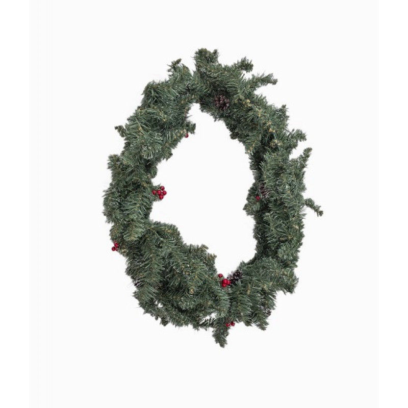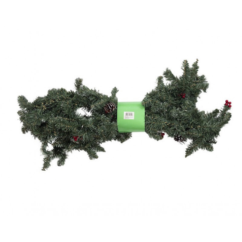 Гірлянда 270 см декоративна Creston Frosted зелена з шишками та ягодами