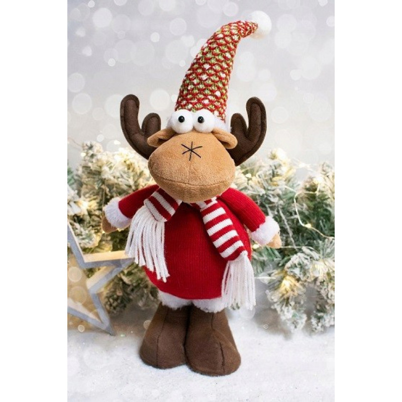 Фігурка новорічна, 48 см, Олень, текстильний, коричневий, червоний