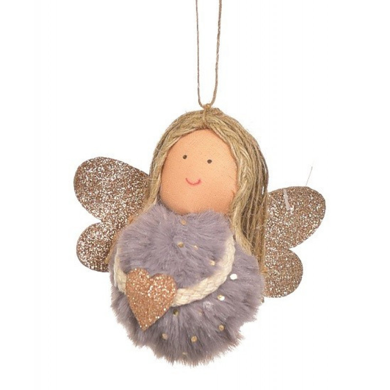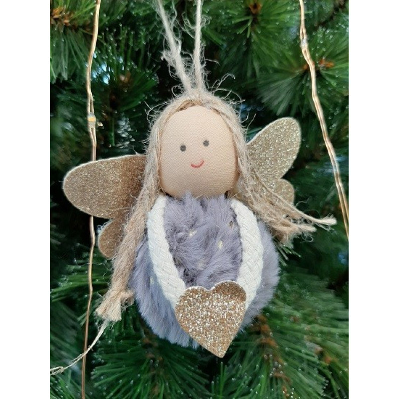 Фігурка новорічна, 9 см, Ангел, текстильний, колір сірий, 4296