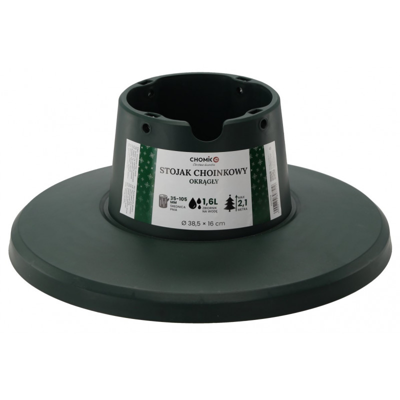 Підставка для ялинки Chomik — це надійне й зручне рішення для встановлення новорічного дерева в приміщенні. Виготовлена з міцного пластику, вона має круглу форму та оснащена металевими гвинтами, які дозволяють надійно зафіксувати стовбур ялинки діаметром від 3,5 до 10,5 см. Завдяки вбудованому резервуару для води об’ємом 1,6 літра натуральна ялинка довше зберігає свіжість і стійкість. Підходить для дерев висотою до 2,1 метра, а компактні розміри дають змогу розмістити її навіть у невеликих приміщеннях.
