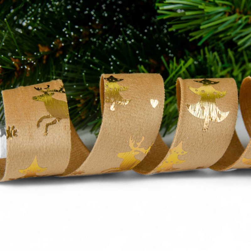 Нейтральний бежевий колір дозволяє комбінувати стрічку з іншими святковими прикрасами в класичних і сучасних палітрах.