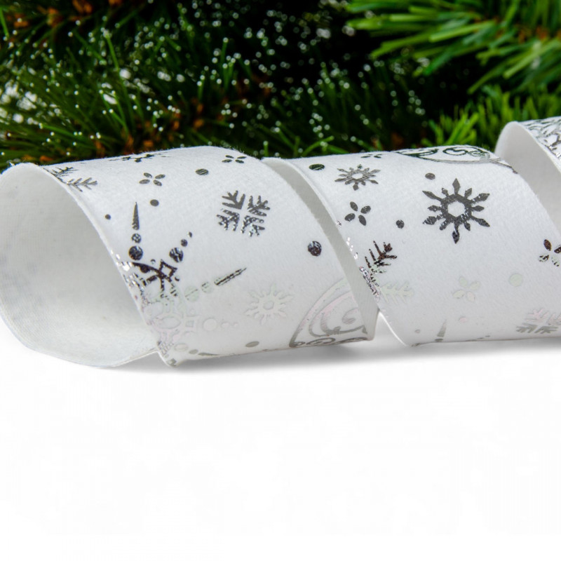 Біла текстильна стрічка Chomik — елегантний акцент для новорічного або святкового оздоблення, який підкреслює чистоту і легкість зимового декору. Її прикрашає глянцевий візерунок у формі куль, зірок і сніжинок, що надає виробу святкового блиску та урочистості. Завдяки ширині 4 см, стрічка підходить для найрізноманітніших декоративних задумів — від подарункових пакунків до оформлення ялинок і композицій.