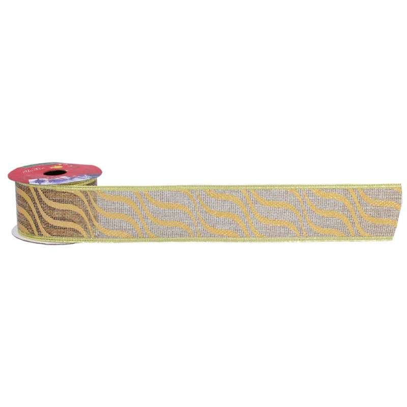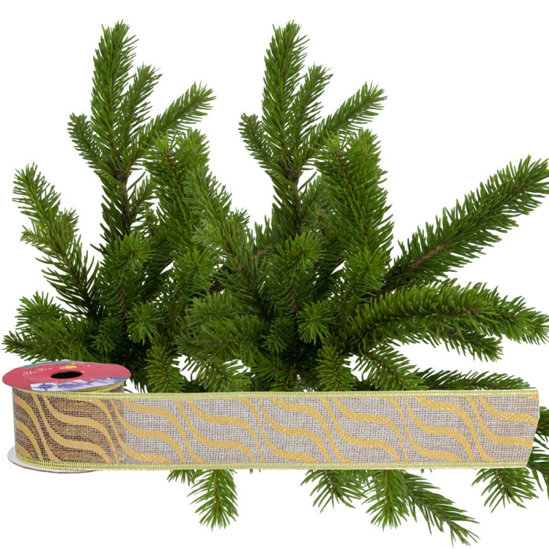 Декоративна стрічка Chomik із візерунком "Хвилі" — це елегантний акцент для святкового оформлення, який поєднує в собі текстильну м’якість і вишуканий блиск. Золотистий колір у поєднанні з хвилястим візерунком створює ефект мерехтіння, який змінюється в залежності від освітлення. Завдяки ширині 5 см стрічка виглядає виразно і підходить як для великих, так і для точкових декоративних рішень. Вона зручно фіксується на ялинкових гілках, подарункових упаковках або елементах інтер’єру, зберігаючи форму та декоративність навіть після багаторазового використання.