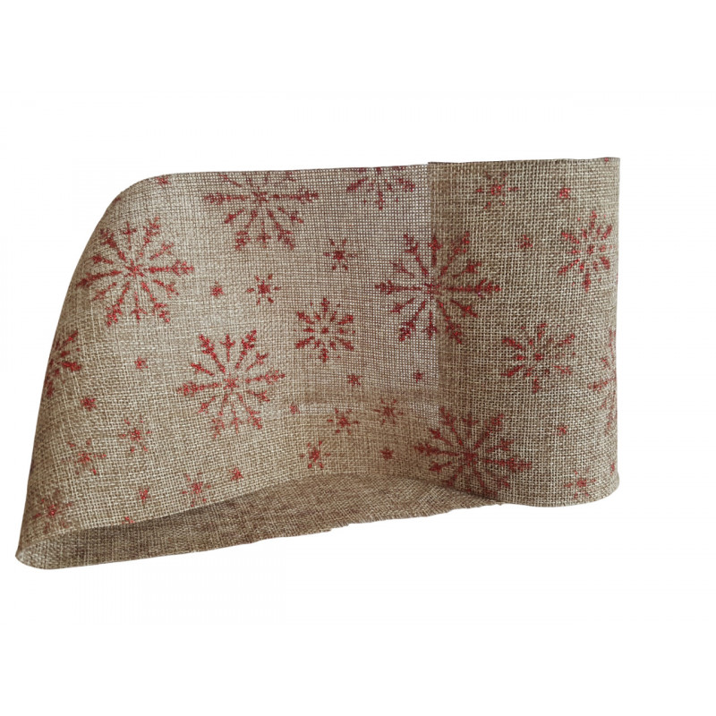 Декоративна стрічка Jumi з візерунком у вигляді сніжинок — це стильна і виразлива прикраса для створення святкової атмосфери. Виготовлена з легкої органзи, вона поєднує в собі прозору текстуру з ніжним блиском, завдяки чому виглядає повітряно і ошатно. Бежевий фон у поєднанні з червоним візерунком надає їй теплий і затишний вигляд, який відмінно вписується в класичний новорічний декор.