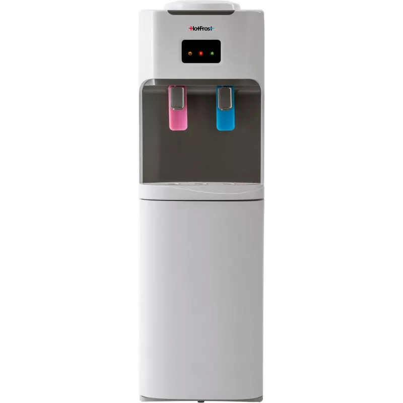 HotFrost V115 оснащений компресорної системою охолодження, що робить його повнофункціональним апаратом. Він відрізняється високою продуктивністю - до двох літрів холодної води на годину, і підходить для установки в офісах з численним персоналом. При цьому температура в приміщенні не впливає на рівень охолодження води. Збільшена потужність нагріву робить цей девайс набагато продуктивніше, адже він здатний нагрівати до шести літрів води на годину.