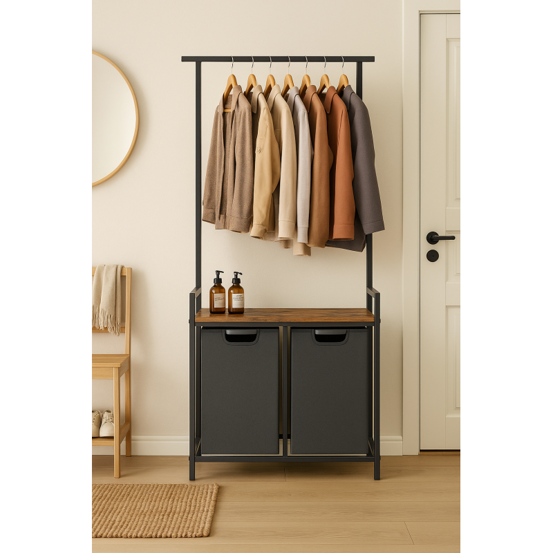 Пориньте у світ розкішного порядку та стилю з кошиком для білизни Leobert Moro з вішалкою 92 л (2 x 46л) у стилі лофт. Контейнер для іграшок, одягу не тільки впорається зі всіма вашими потребами в сортуванні речей, але й додасть вашому інтер'єру неповторного шарму. Його продуманий дизайн об'єднує функціональність та естетику, створюючи ідеальне рішення для сучасного дому. Завдяки використанню високоякісних матеріалів та міцної конструкції, цей кошик здатен витримати навіть найважчі випробування. Він перетворює рутинне завдання на приємний процес, даруючи вам відчуття задоволення від кожного використання. Незалежно від того, чи шукаєте ви ефективний спосіб організації білизни, чи прагнете внести в інтер'єр нотку лофту, органайзер стане вашим надійним помічником. Він не лише забезпечить ідеальний порядок у вашому домі, але й підкреслить вашу увагу до деталей та стиль.