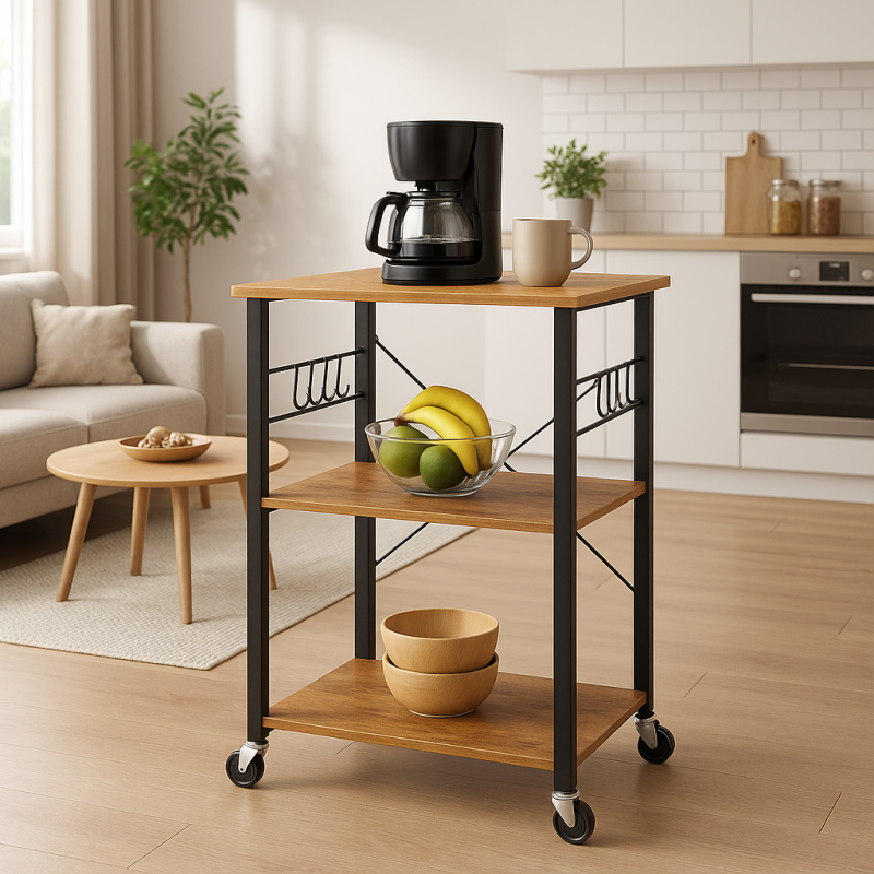 Уявіть собі меблі, які не лише служать вашій зручності, але й перетворюють кожен куток вашого дому на витвір мистецтва. Стелаж Leobert Dash на колесах у стилі Loft - це не просто меблі, а чудове рішення для вашої кухні, яке поєднує в собі елегантність та практичність. Його дизайн, натхненний індустріальним стилем, вносить в інтер'єр кухні особливий характер і шарм. Завдяки зручним колесам, що обертаються на 360 градусів, стелаж можна легко переміщати з одного куточка кухні в інший, що є ідеальним для змін у оформленні простору або під час прибирання. Місткі полиці різних розмірів дозволяють зберігати не тільки кухонне приладдя та посуд, але й продукти, спеції, а також декоративні елементи, що робить кожен приготований обід або вечерю особливим. Верхня полиця ідеально підходить для часто використовуваних предметів, забезпечуючи легкий доступ, тоді як нижні полиці можуть вмістити більші та важкі предмети завдяки їхній високій міцності. Leobert Dash не лише допомагає організувати кухонний простір, але й додає йому вишуканості та стилю, перетворюючи кухню на місце, де хочеться проводити час та насолоджуватися кожною хвилиною.