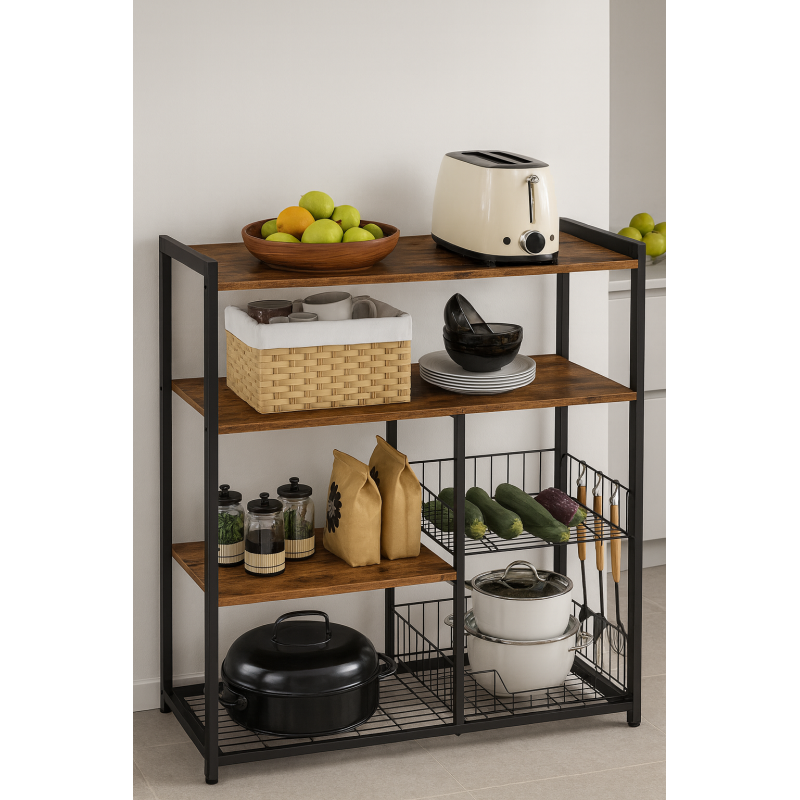 Зробіть ваш інтер'єр осередком стилю та функціональності з багатоярусним стелажем Leobert Denny у стилі Loft. Цей унікальний предмет меблів не тільки додає вашому простору сучасного індивідуального шарму, але й забезпечує бездоганну організацію та зберігання. Кожна деталь цього стелажу продумана з великою увагою, щоб максимально полегшити ваше життя. Стиль Loft, відомий своєю естетикою грубої обробки та відкритих конструкцій, чудово поєднується з теплими відтінками коричневої ламінованої ДСП та міцністю сталі. Відмінні технічні характеристики стелажу дозволяють витримувати значні навантаження, що робить його ідеальним для зберігання як кухонного посуду, так і декоративних предметів. Придбавши тумбу з полицями, ви отримуєте не просто меблі, а справжнього помічника, що дарує комфорт і порядок у вашому домі. Його багатоярусна конструкція забезпечує достатньо місця для всіх ваших речей, при цьому займаючи мінімум простору. Це ідеальне рішення для тих, хто прагне поєднати стильний вигляд з максимальною практичністю. Додайте сучасного лофту у свій дім з Leobert Denny та насолоджуйтеся гармонією стилю і функціональності кожного дня.