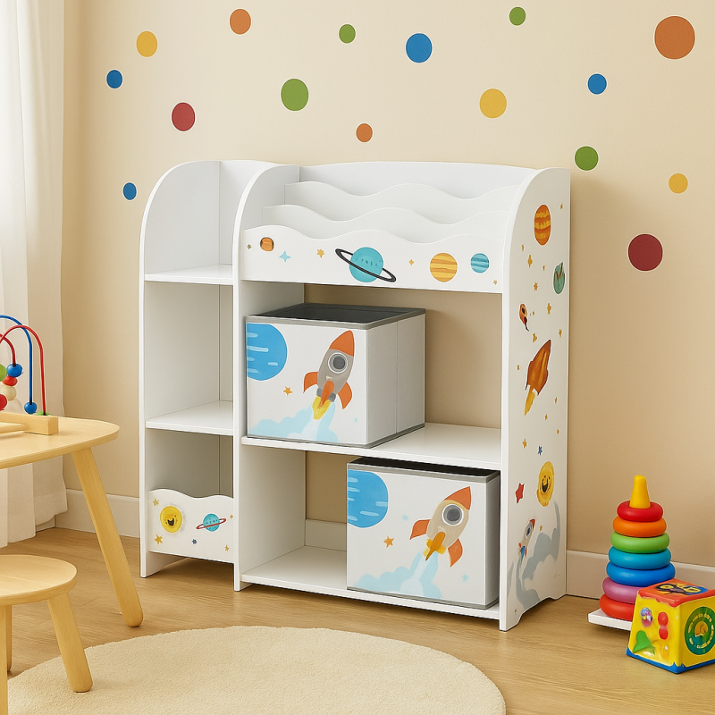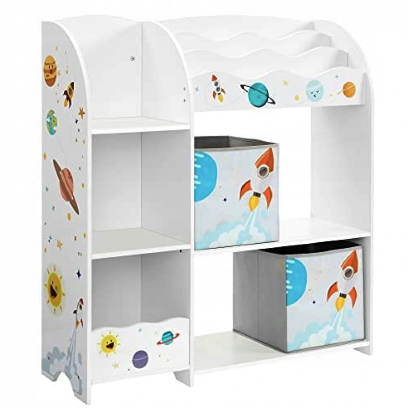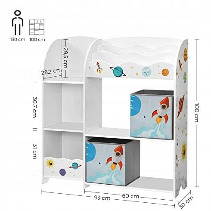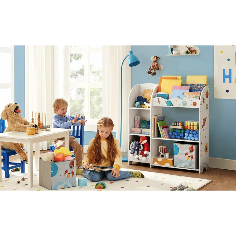 Стелаж-органайзер Leobert Dreamer - це не просто меблі, це справжній острівець порядку та затишку у дитячій кімнаті. Кожна дитина мріє про простір, де її іграшки, книжки та інші скарби будуть зручно розташовані та легко доступні. Leobert Dreamer втілює у собі це бажання, поєднуючи стильний дизайн, практичність і увагу до кожної деталі. Він має барвисте оформлення, що ідеально впишеться у будь-який інтер'єр дитячої або ігрової кімнати, привертаючи увагу як батьків, так і дітей. Завдяки продуманій конструкції, що включає 3 відділення для книг, 5 полиць для іграшок та 2 місткі ящики для кубиків або інших дрібниць, цей органайзер стане незамінним помічником у підтриманні порядку.