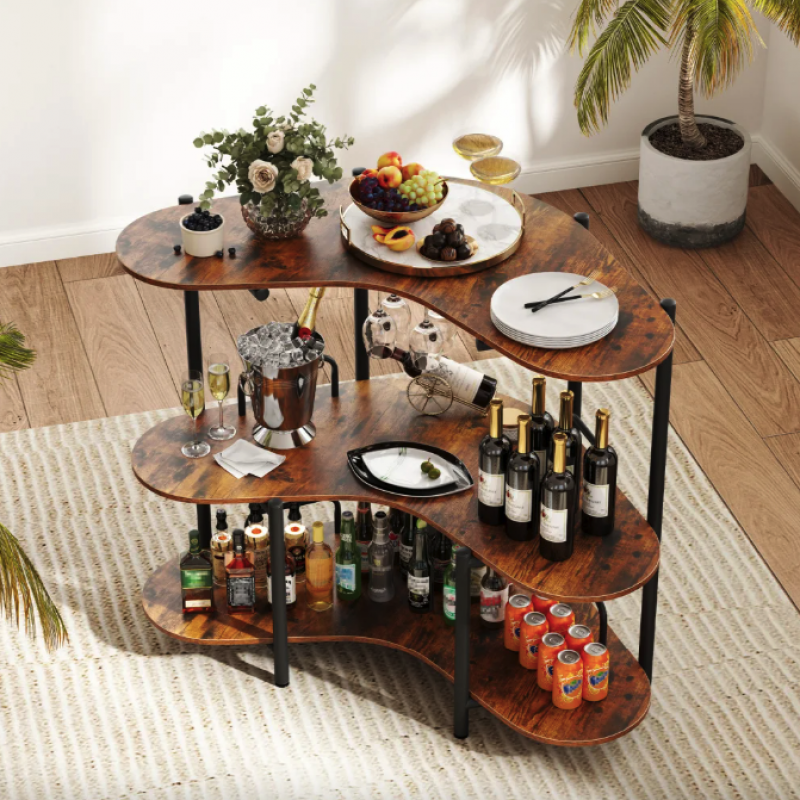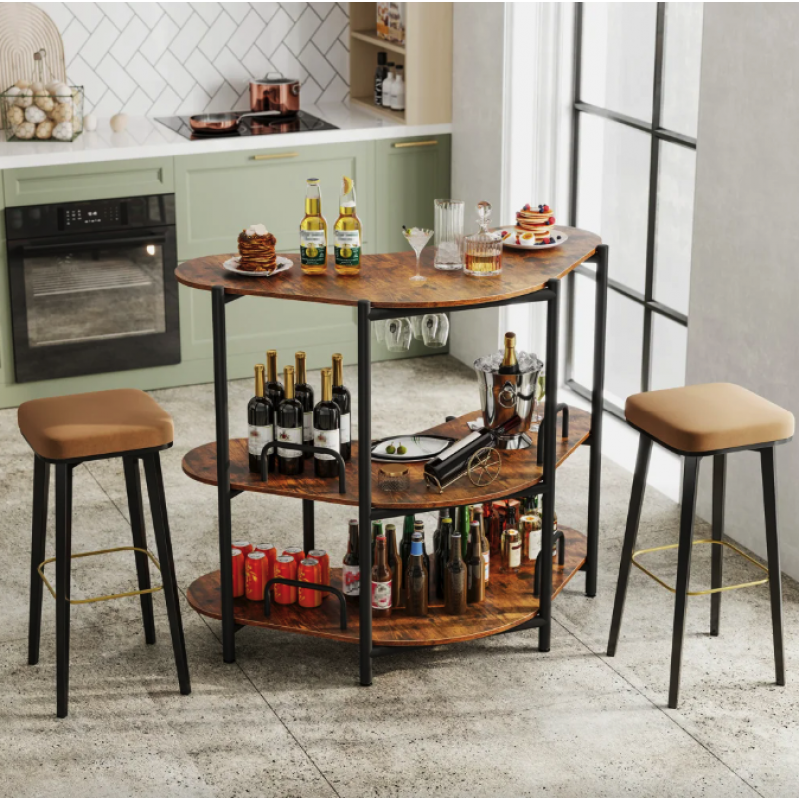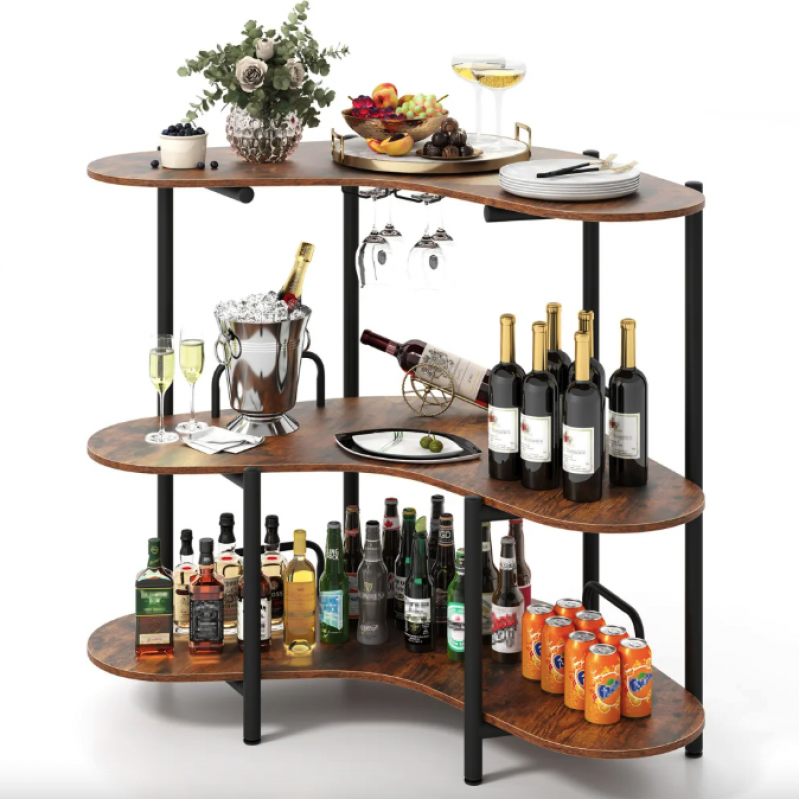 Барний стіл фуршетний Costway Wise з полицями кутовий
