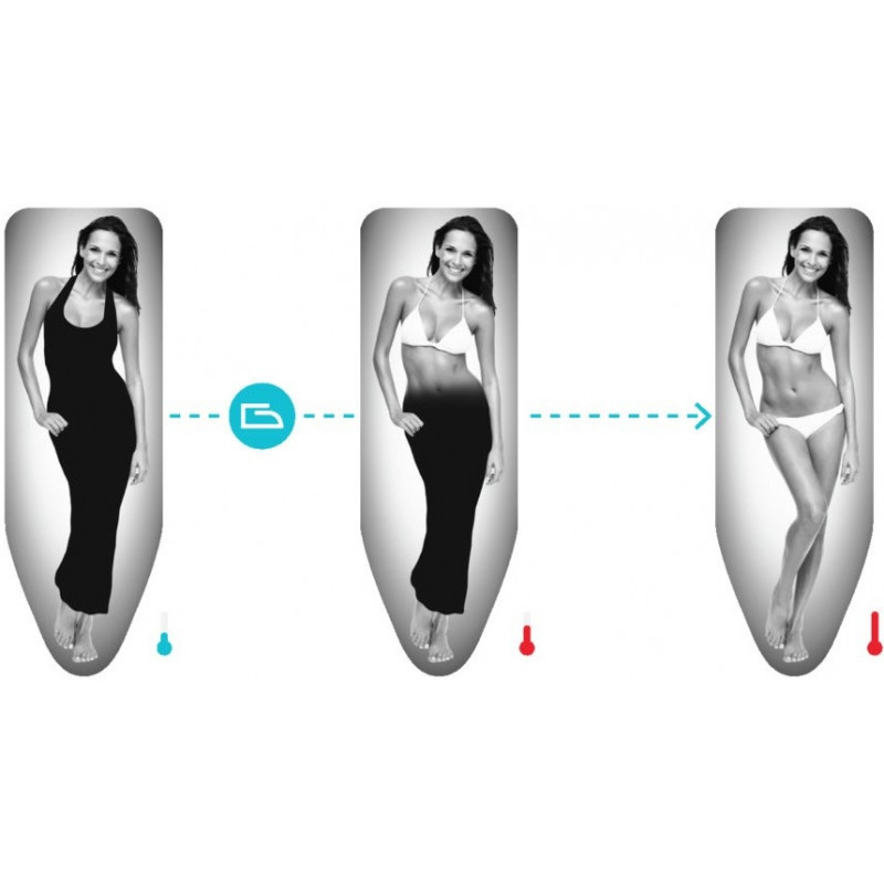 Чохол для прасувальної дошки Colombo Thermosensible Woman 140 x 55 см (COP930) - термочутливий чохол розроблений для максимально комфортного прасування. Він виготовлений зі 100% бавовни, що поєднує термостійкість, зносостійкість та привабливий зовнішній вигляд. Повстяна підкладка 250г/м2. Цей чохол — ідеальне доповнення до вашої прасувальної дошки, який забезпечить бездоганний вигляд одягу та зручність у щоденному використанні. Під впливом тепла від праски чохол змінює зображення.