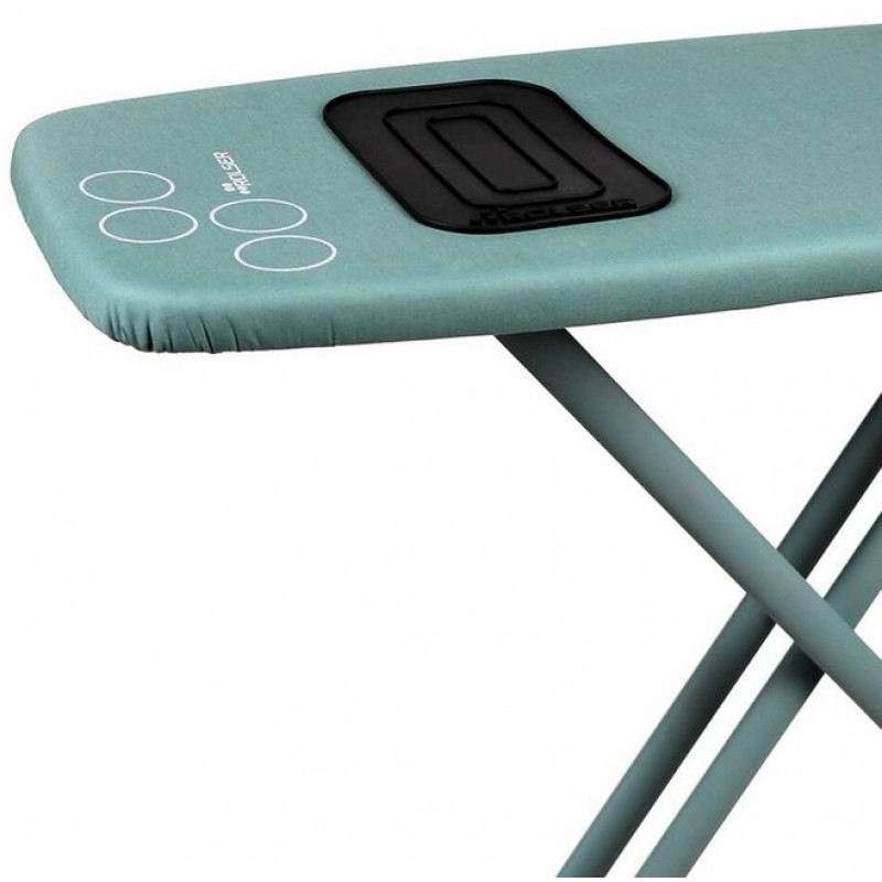 Дошка для прасування Rolser K-Surf SalviaTube (K07003-1072) - інноваційний дизайн та широкий функціонал з турботою про природу. Виготовлена із переробленого технічного полімеру з додаванням металевих мікрочастин. Перфорована основа робочої поверхні запобігає утворенню конденсату та підвищує стійкість до впливу високої температури. Модель регулюється по висоті в одинадцяти положеннях і обладнана автоматичним фіксатором. Сталеві ніжки з антикорозійним покриттям чорного кольору мають пластикові накладки, які запобігають ковзанню та зменшують шум. Чохол дошки виконаний зі стовідсоткової бавовни з флісовою підкладкою та спеціальним захисним покриттям. Дошка для прасування Rolser K-Surf Black Tube Negro (K07002-1023) комплектується окремою силіконовою підставкою під праску.