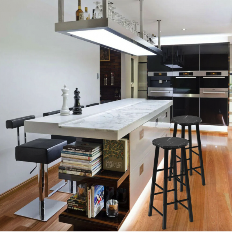 У кожному інтер'єрі має бути місце, яке надихає на діалог, смакування улюблених напоїв чи просто тиху паузу з ноткою стилю. Саме такий настрій створює набір барних меблів Costway Eugad - елегантне поєднання лаконічного дизайну, текстури штучного мармуру, надійної металевої конструкції та ергономічної двоярусної підставки для ніг. Універсальний комплект із двох барних стільців чудово підходить для дому, студії, бару або кав'ярні, легко адаптується до інтер'єру в стилі Loft, індастріал або мінімалізм. Це більше, ніж просто стільці - це атмосфера затишку й сучасного ритму, яку ви створюєте самі.