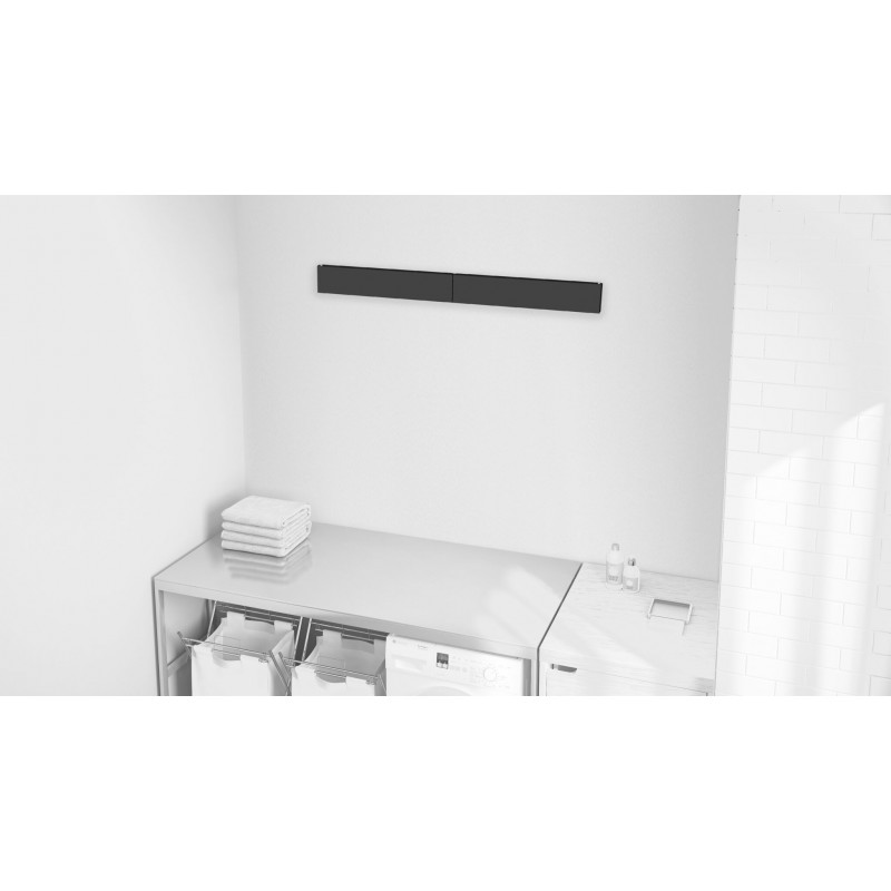 Сушарка для білизни настінна Colombo Ghost Black (SP100B) - у складеному стані стає практично невидимою на стіні. Це преміальна модель, де основний акцент зроблено на естетиці та прихованому монтажі. Deep Black (глибокий чорний) — матове покриття, яке ідеально пасує до сучасних інтер'єрів, змішувачів у стилі лофт або темної плитки. Виготовлено з високоміцного алюмінію та сталі з захисним порошковим напиленням, що повністю виключає появу іржі.