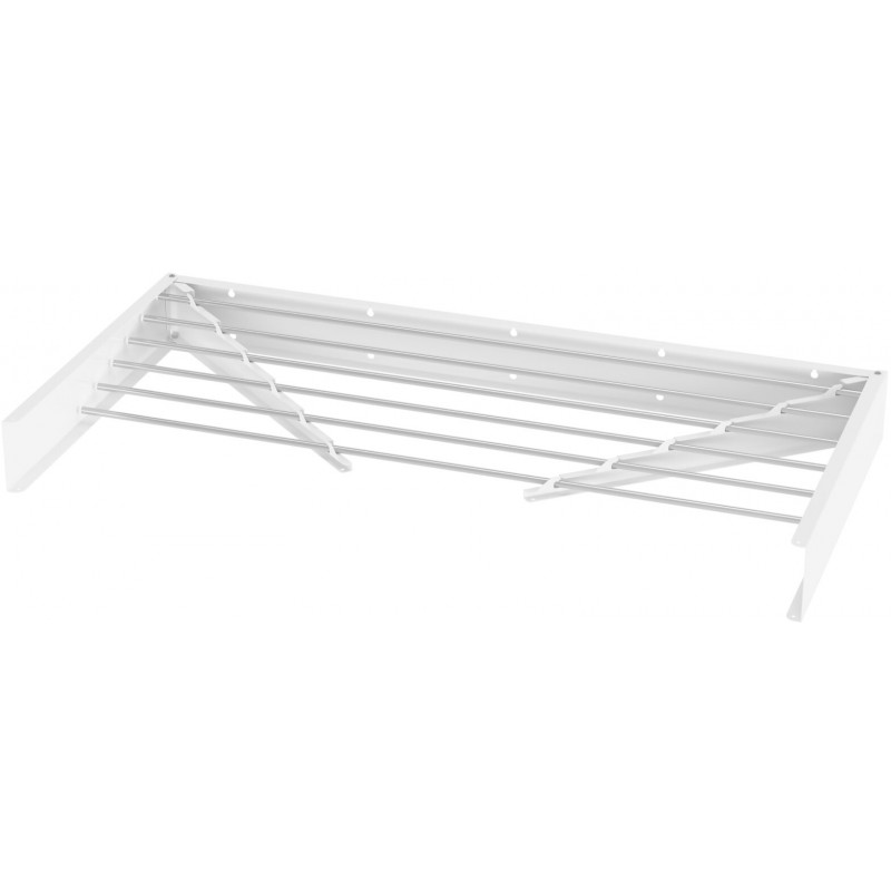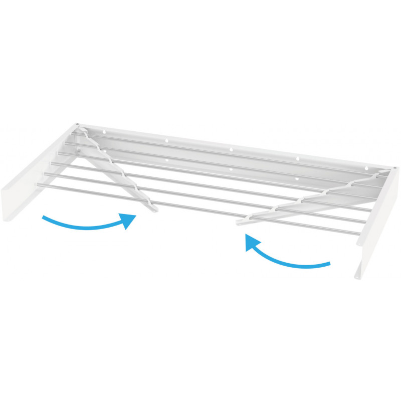 Сушарка складається «книжкою» або панеллю до стіни. Коли вона закрита, ви бачите лише охайну тонку планку. Ця модель сушарки пропонує близько 6 метрів корисної площі для розвішування .У закритому стані її товщина мінімальна, що дозволяє встановлювати її навіть за дверима або у вузьких душових зонах.