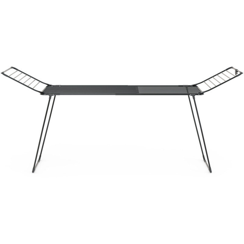 Це преміальна підлогова сушарка, розроблена для великих родин та активного щоденного використання. Завдяки збільшеній робочій поверхні у 25 метрів, вона дозволяє одночасно висушити до 2-х завантажень пральної машини, займаючи при цьому мінімум місця у вашій оселі. Додаткові секції («крила») та оптимальна відстань між прутами дозволяють зручно розвісити як дрібні речі, так і великі простирадла чи скатертини. Спеціальне епоксидне покриття сталевих елементів гарантує, що сушарка не іржавітиме від вологи і не залишатиме плям на вашому білому одязі. Модель Brooklyn вирізняється підвищеною стабільністю. Навіть при повному завантаженні важкими мокрими речами (джинси, рушники), конструкція залишається стійкою і не хитається. Прути товщиною 4–5 мм не прогинаються і не створюють гострих заломів на тканині, що значно полегшує прасування після сушіння. Ніжки оснащені антиковзними накладками, які захищають делікатні поверхні (паркет, ламінат) від подряпин. У складеному вигляді сушарка стає пласкою (близько 8 см), що дозволяє зберігати її за дверима або у вузькій шафі