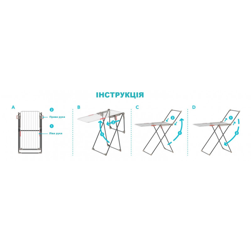 - Ніжки сушарки обладнані пластиковими накладками та коліщатами.