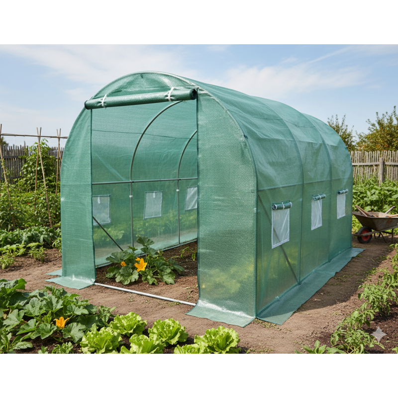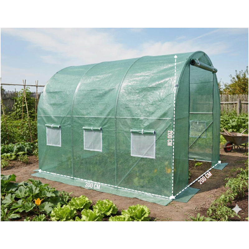 Теплиця LEOBRO Garden площею 6 м² — це оптимальне рішення для дачі та присадибної ділянки. Завдяки компактним розмірам (3х2 м) вона легко розміститься навіть у невеликому саду, забезпечуючи при цьому достатньо простору для вирощування помідорів, огірків, перцю, салату та розсади.