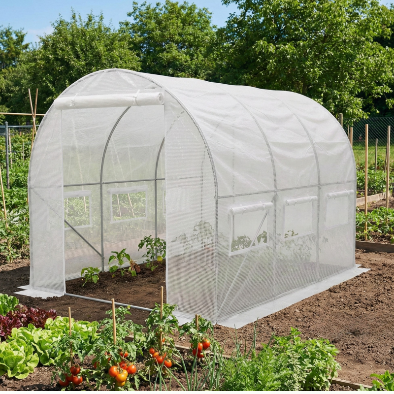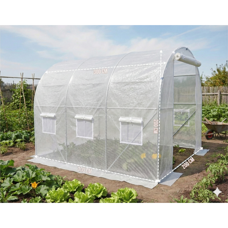 Теплиця LEOBRO Garden площею 6 м² — це оптимальне рішення для дачі та присадибної ділянки. Завдяки компактним розмірам (3х2 м) вона легко розміститься навіть у невеликому саду, забезпечуючи при цьому достатньо простору для вирощування помідорів, огірків, перцю, салату та розсади.