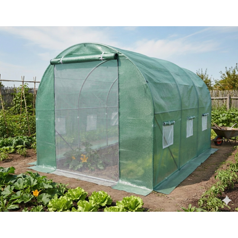 Теплиця LEOBRO Garden площею 6 м² — це оптимальне рішення для дачі та присадибної ділянки. Завдяки компактним розмірам (3х2 м) вона легко розміститься навіть у невеликому саду, забезпечуючи при цьому достатньо простору для вирощування помідорів, огірків, перцю, салату та розсади.