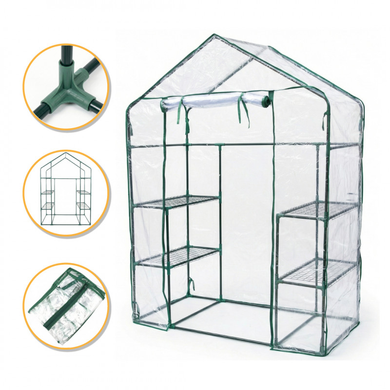 Прозоре ПВХ-покриття товщиною 0,1 мм добре пропускає сонячне світло, утримує тепло та створює сприятливий мікроклімат усередині теплиці. Пластикові з’єднання забезпечують швидку й просту збірку без спеціальних інструментів. Усі елементи компактно упаковані — постачається в одній коробці, що зручно для транспортування.