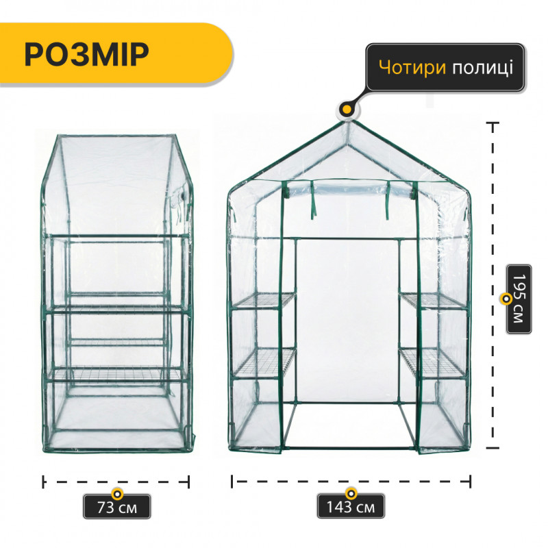 Стелаж-теплиця LEOBRO 143x73x195 см на 4 полиці (LB-G120)
