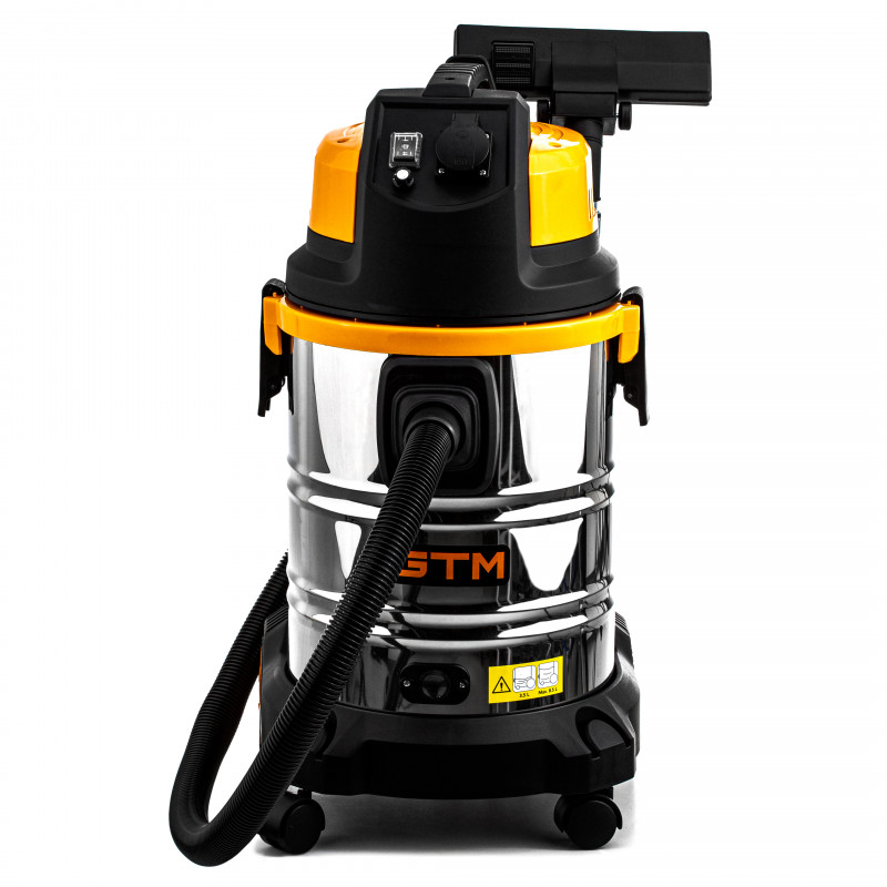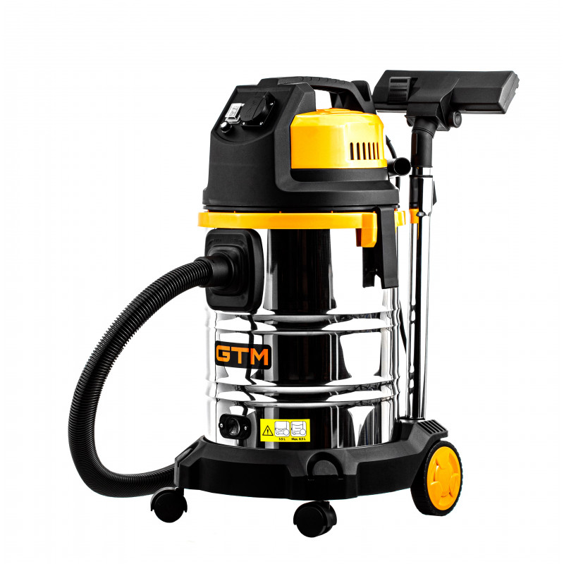 GTM JN 508 - промисловий пилосос для прибирання сухого та вологого сміття, а також збору води. Сертифікований для роботи з пилом класу L. Працює від побутової електромережі з напругою 220 В. Його контейнер виготовлено з нержавіючої сталі та має ємність 30 літрів чого достатньо для поглинання грубого або дрібного сміття.