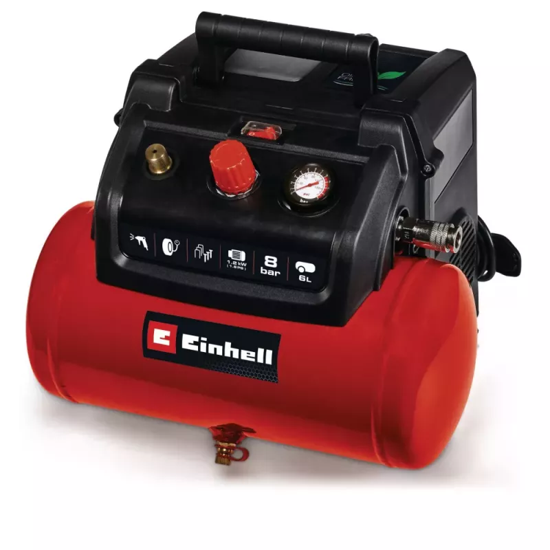 Завдяки цьому мобільному і компактному компресору Einhell ви можете виконувати безліч простих робіт, що вимагають стисненого повітря, в домашніх умовах, в саду і гаражі або в кемпінгу.
