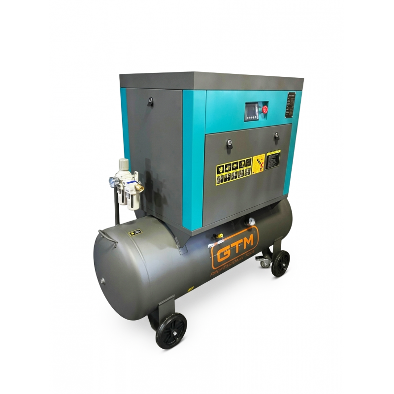 Гвинтові компресори GTM мають систему прямого приводу та діапазон потужностей від 3кВт до 7,5кВт та продуктивність від 350л/хв до 1000л/хв.