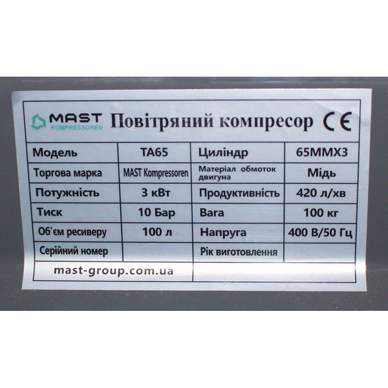 Чому варто вибрати саме поршневий компресор MAST TA65/100L 400V